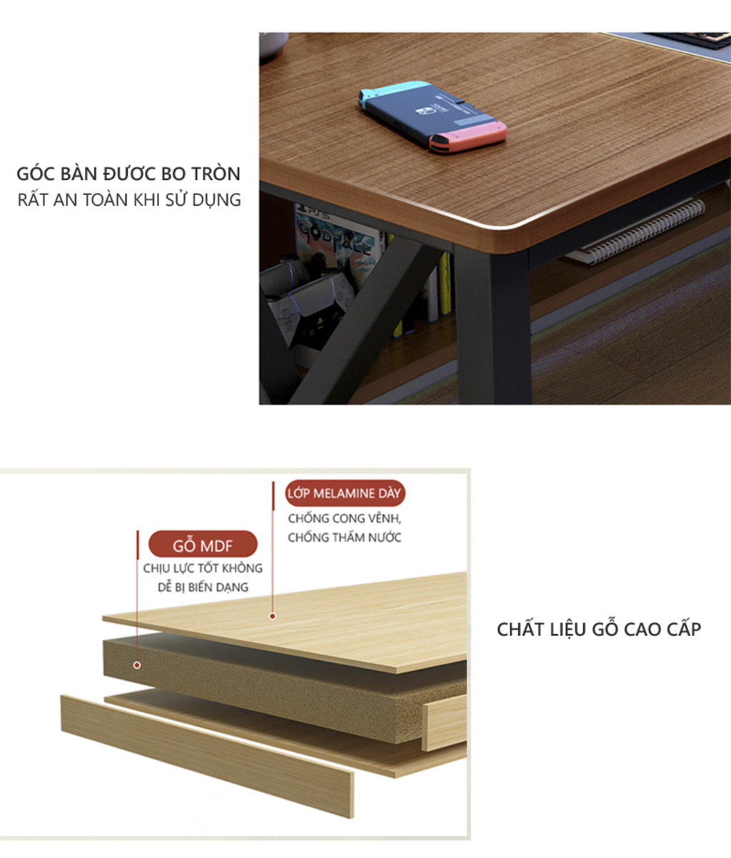 | Thông số khác | Bề mặt: lớp phủ melamine dày dặn Dán chỉ cạnh: Có Ngăn kéo: Không |