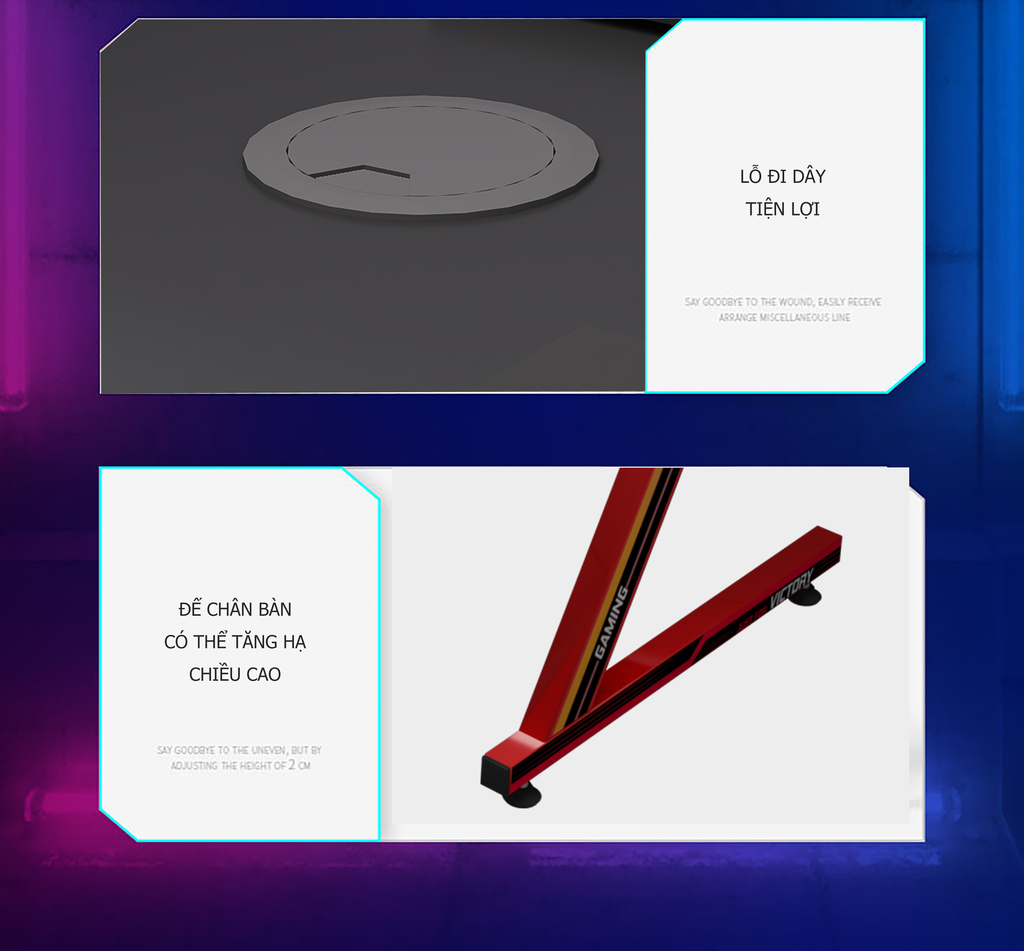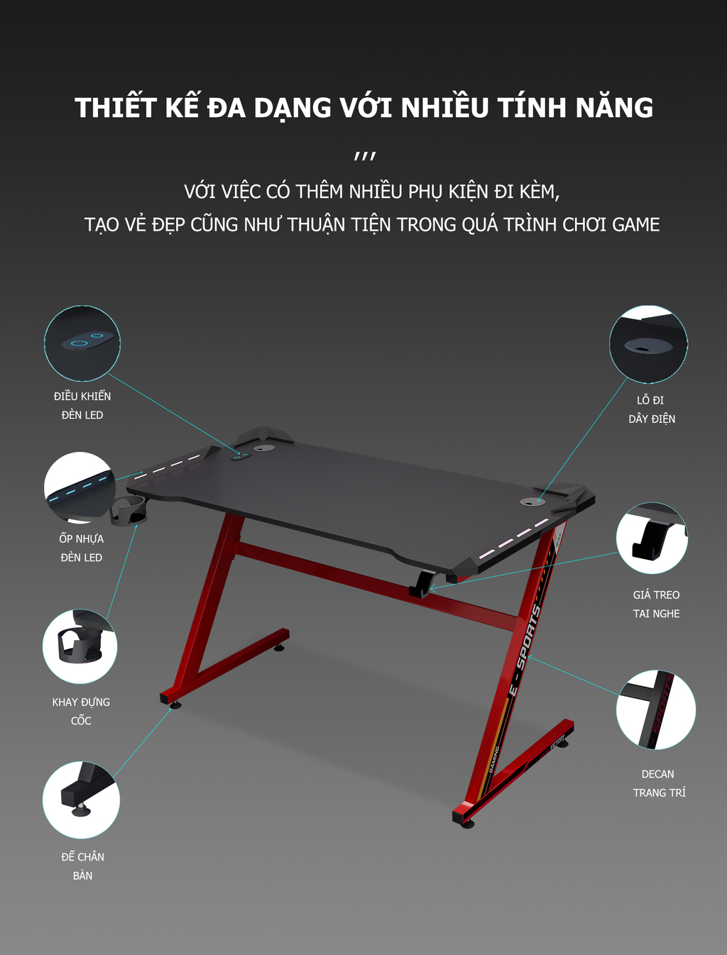 Bàn Gaming đẹp làm từ các vật liệu bền bỉ, chịu tải trọng cao, chống thấm nước, chống ăn mòn, nâng cấp thành 1 sản phẩm vừa thẩm mỹ vừa chất lượng. Hãy tham khảo thêm thêm tính năng thêm bên dưới.