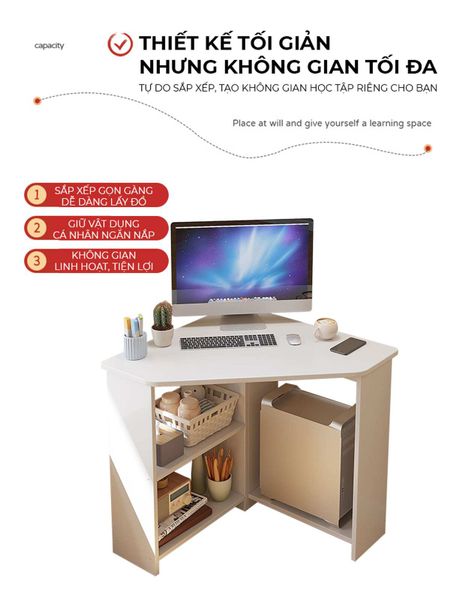 Bàn còn tích hợp kệ mở tiện lợi để bạn lưu trữ sách vở, tài liệu hay đồ trang trí một cách gọn gàng, trong tầm với. Việc lắp đặt cũng rất dễ dàng và nhanh chóng. GP386 là giải pháp hoàn hảo cho không gian nhỏ hoặc bất kỳ ai muốn có một góc làm việc hiệu quả tại nhà.