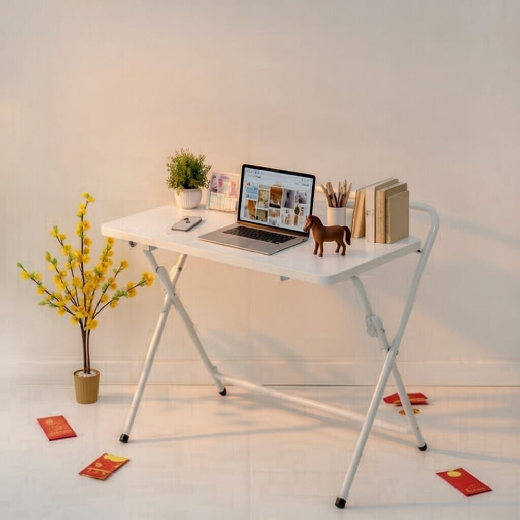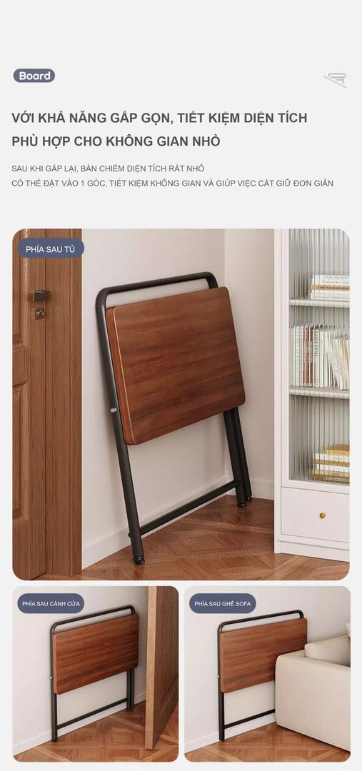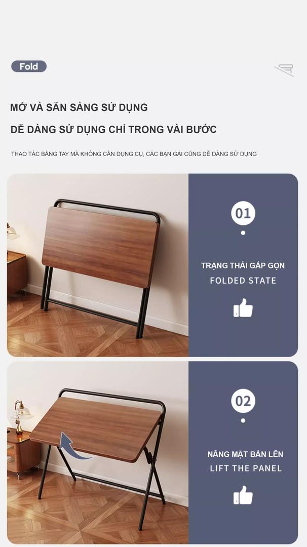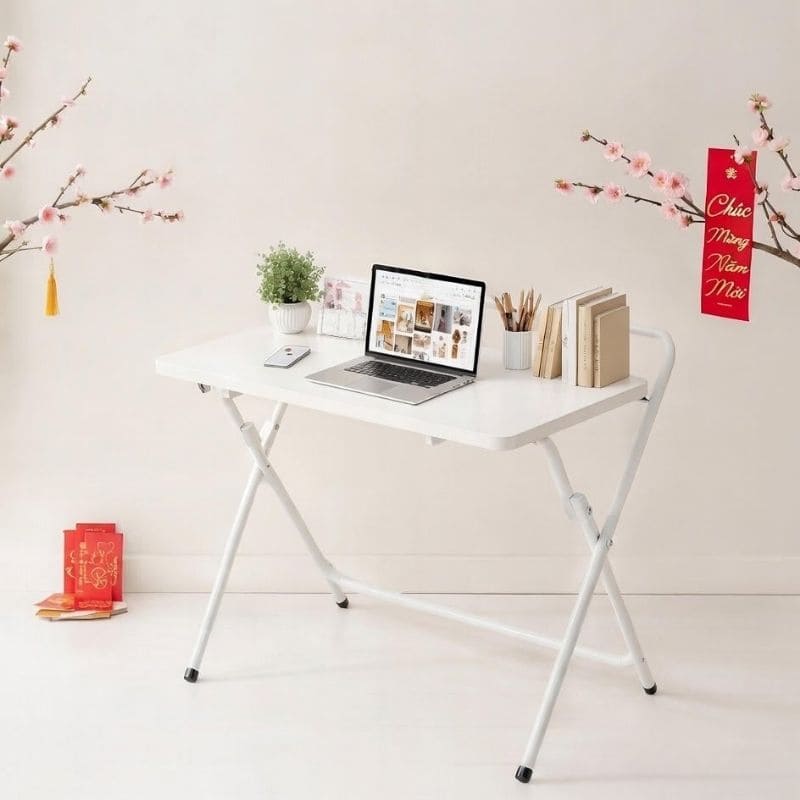 - Gấp gọn trong tích tắc: Khi không sử dụng, bạn có thể gấp gọn chiếc bàn chỉ trong vài giây, trả lại sự thoáng đãng. Đây là điểm cộng lớn cho những ai yêu thích không gian sống tối giản và ngăn nắp