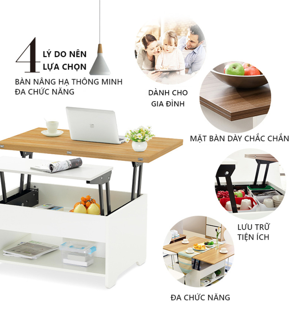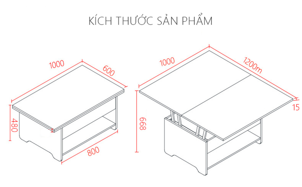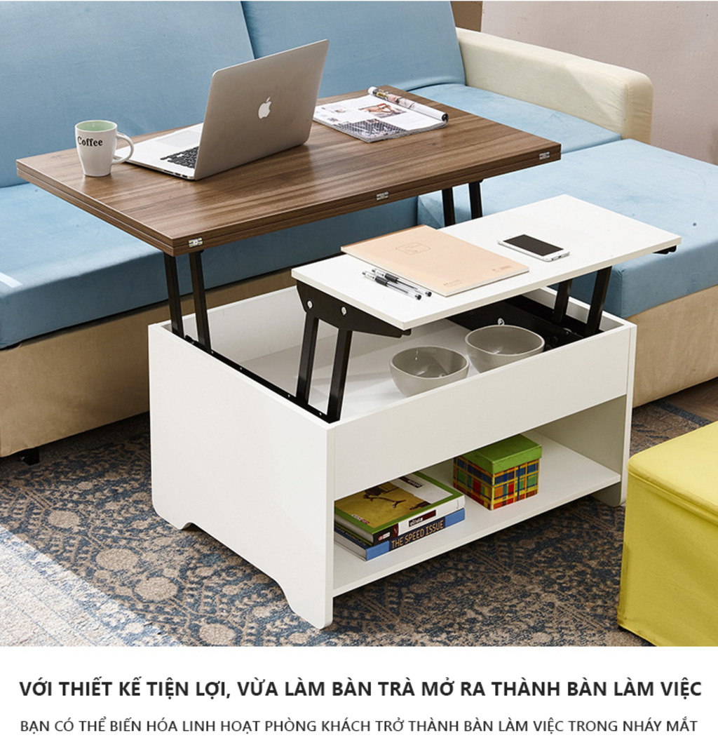 Mẫu bàn trà đẹp có thiết kế tối ưu tiết kiệm diện tích cho không gian sống, bề mặt bàn mở rộng tăng tính linh hoạt khi có nhu cầu sử dụng
