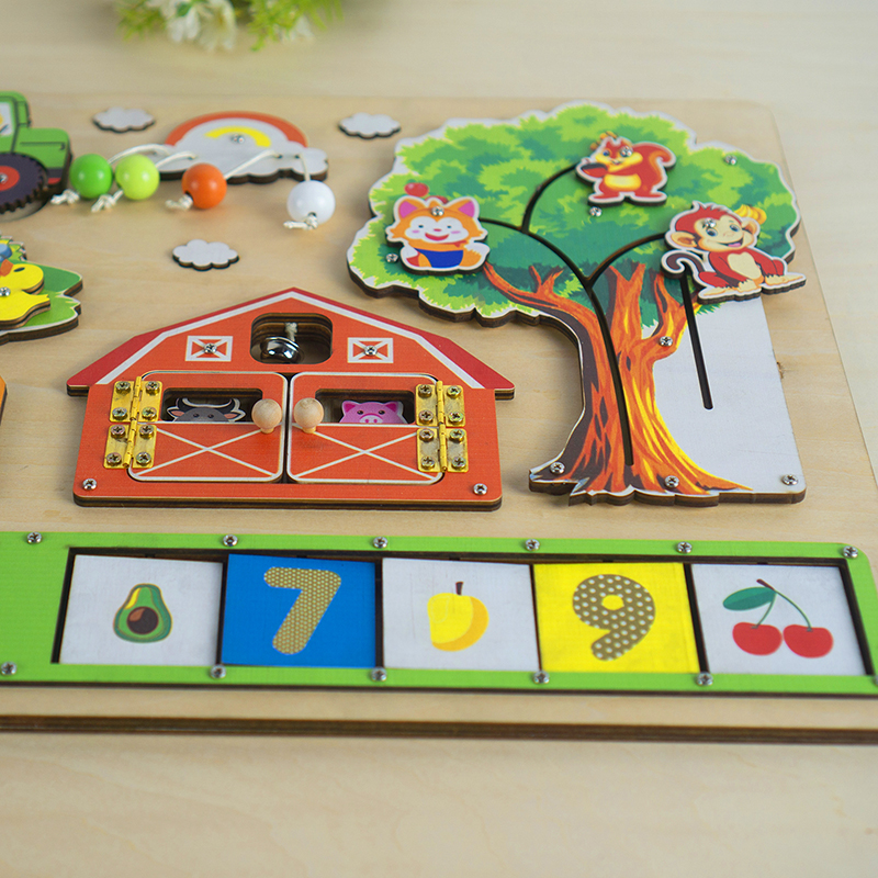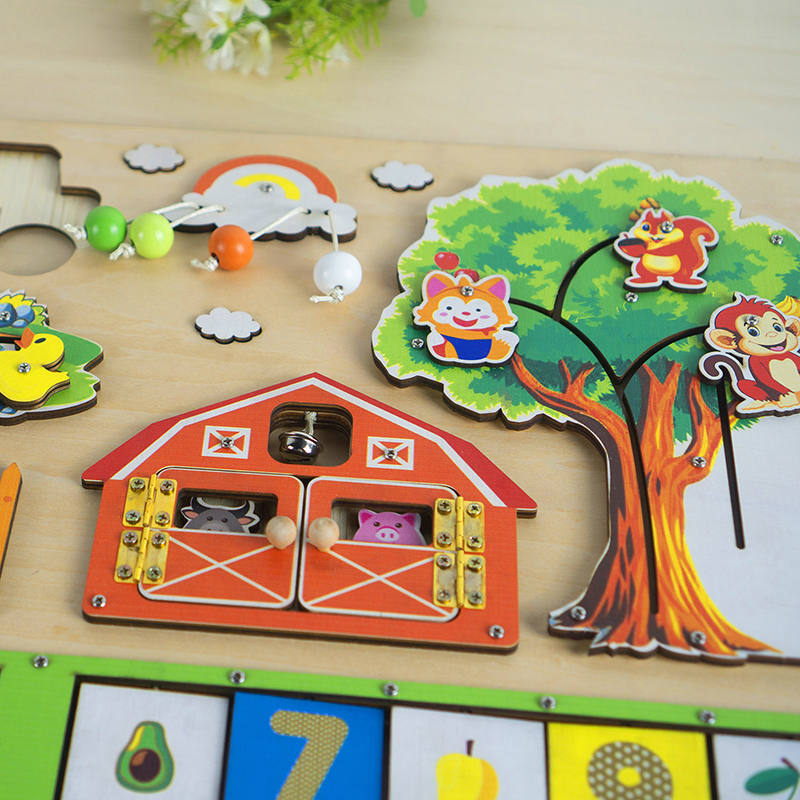 Phát triển toàn diện các giác quan: Bé sẽ được kích thích các giác quan như thị giác, xúc giác, thính giác thông qua các hoạt động trên bảng đồ chơi.