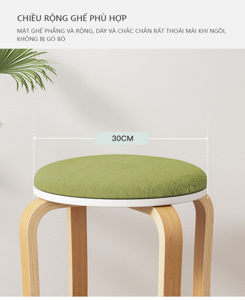 Kích thước: Mặt đệm rộng 30cm - chân cao 47cm