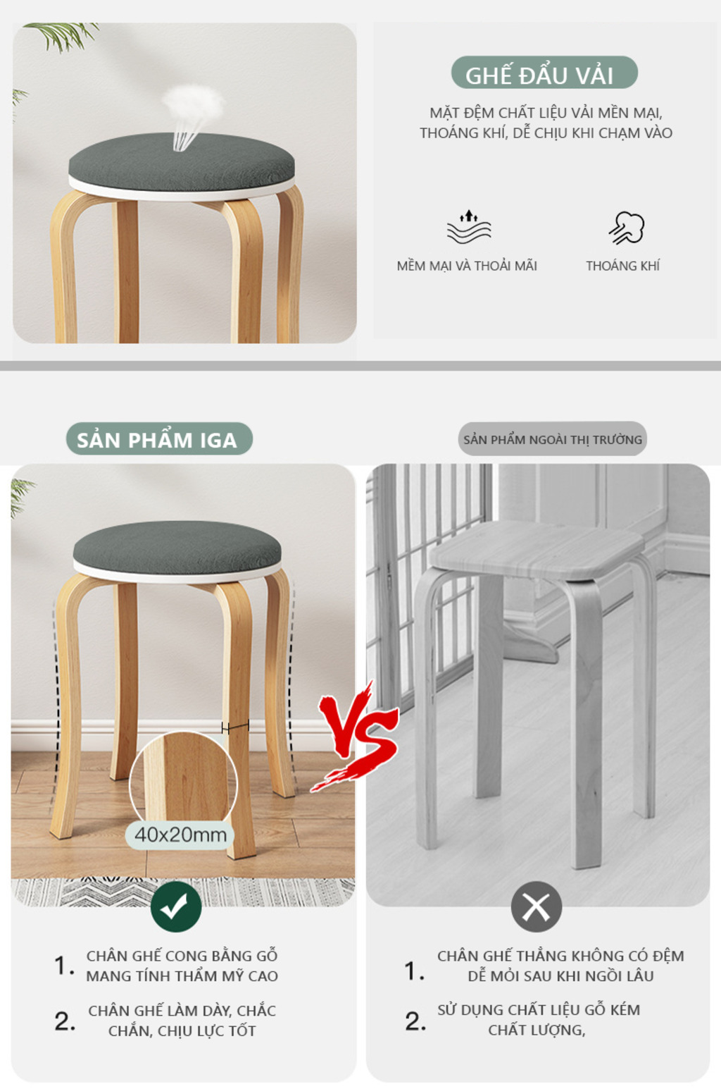 Chất liệu: Vải Bố - Chân Gỗ Sồi