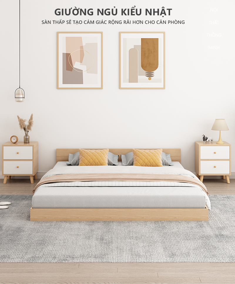 Giường ngủ được thiết kế theo phong cách Bắc Âu hiện đại thông minh phù hợp các loại không gian bày trí, màu gỗ tươi sáng, cho bạn một giấc ngủ sâu sau một ngày làm việc học tập mệt mỏi.