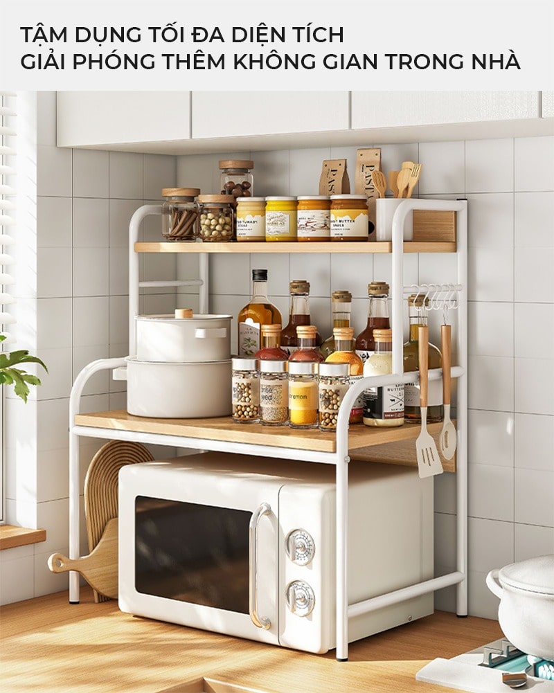 Kệ đa năng nên có thể để rất nhiều đồ dùng bếp khác nhau như gia vị, vật dụng bếp... giúp căn bếp thêm phần gọn gàng, ngăn nắp với kích thước nhỏ gọn phù hợp mọi không gian, dễ dàng vệ sinh.