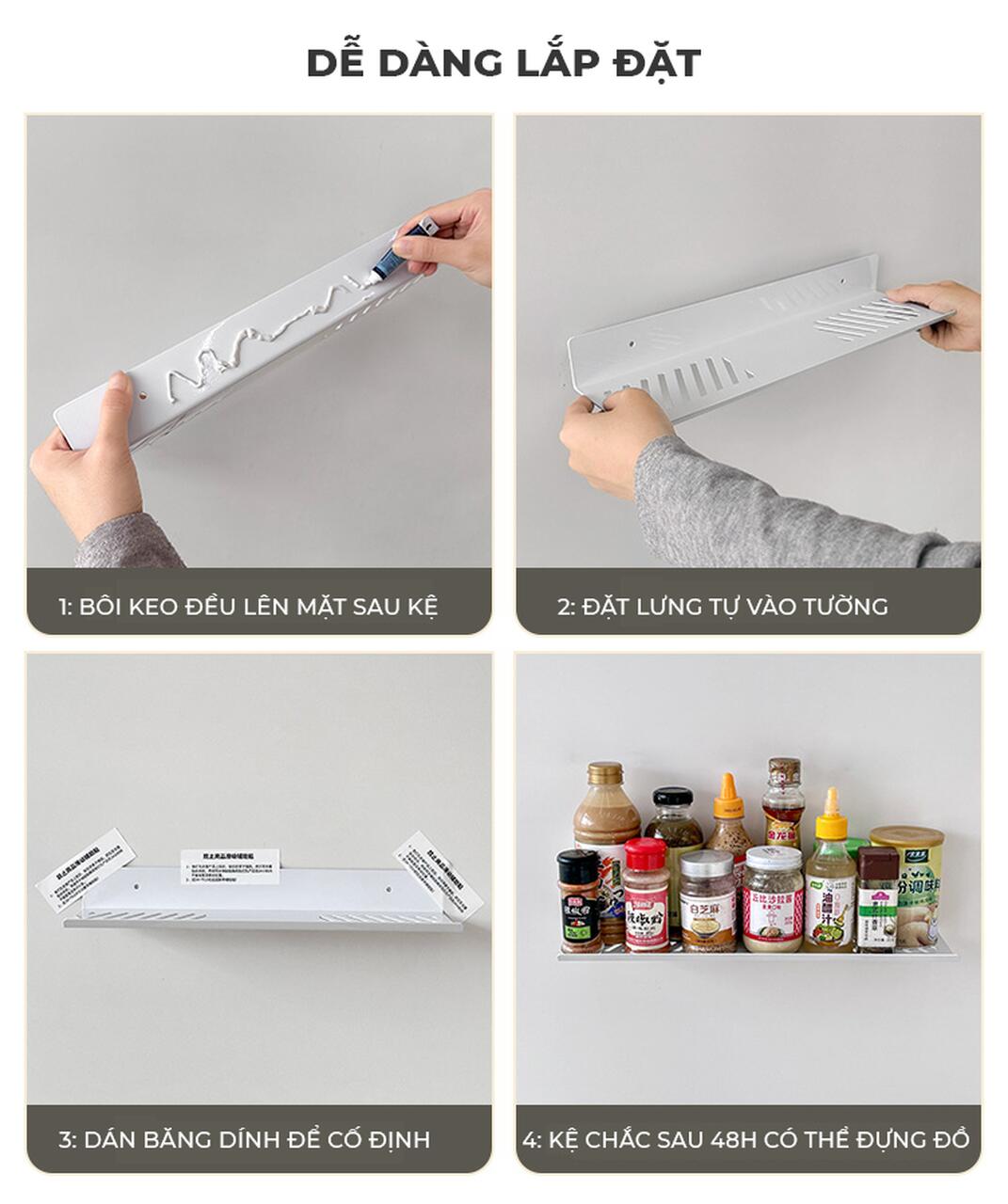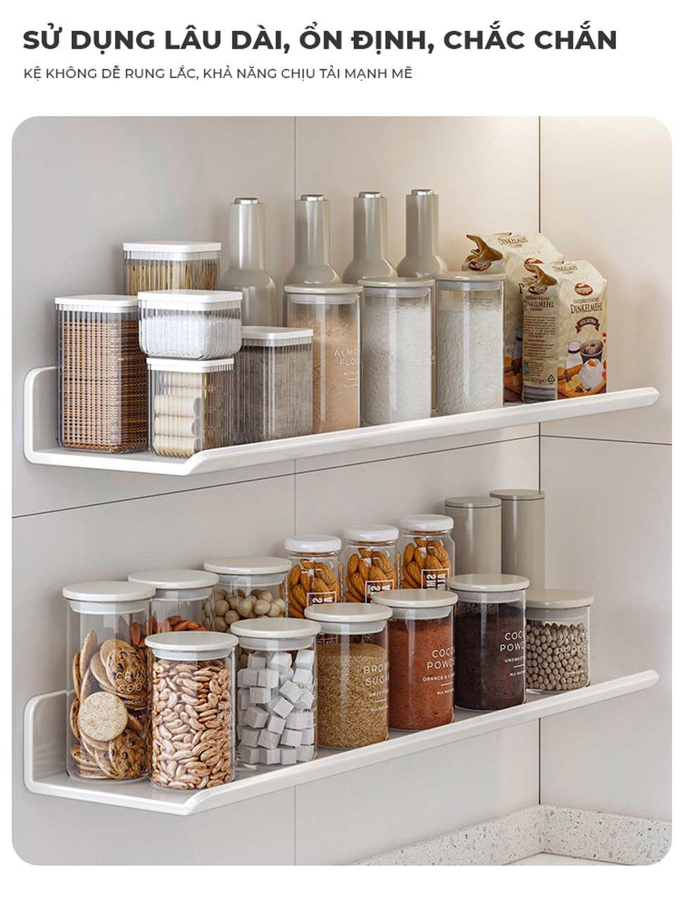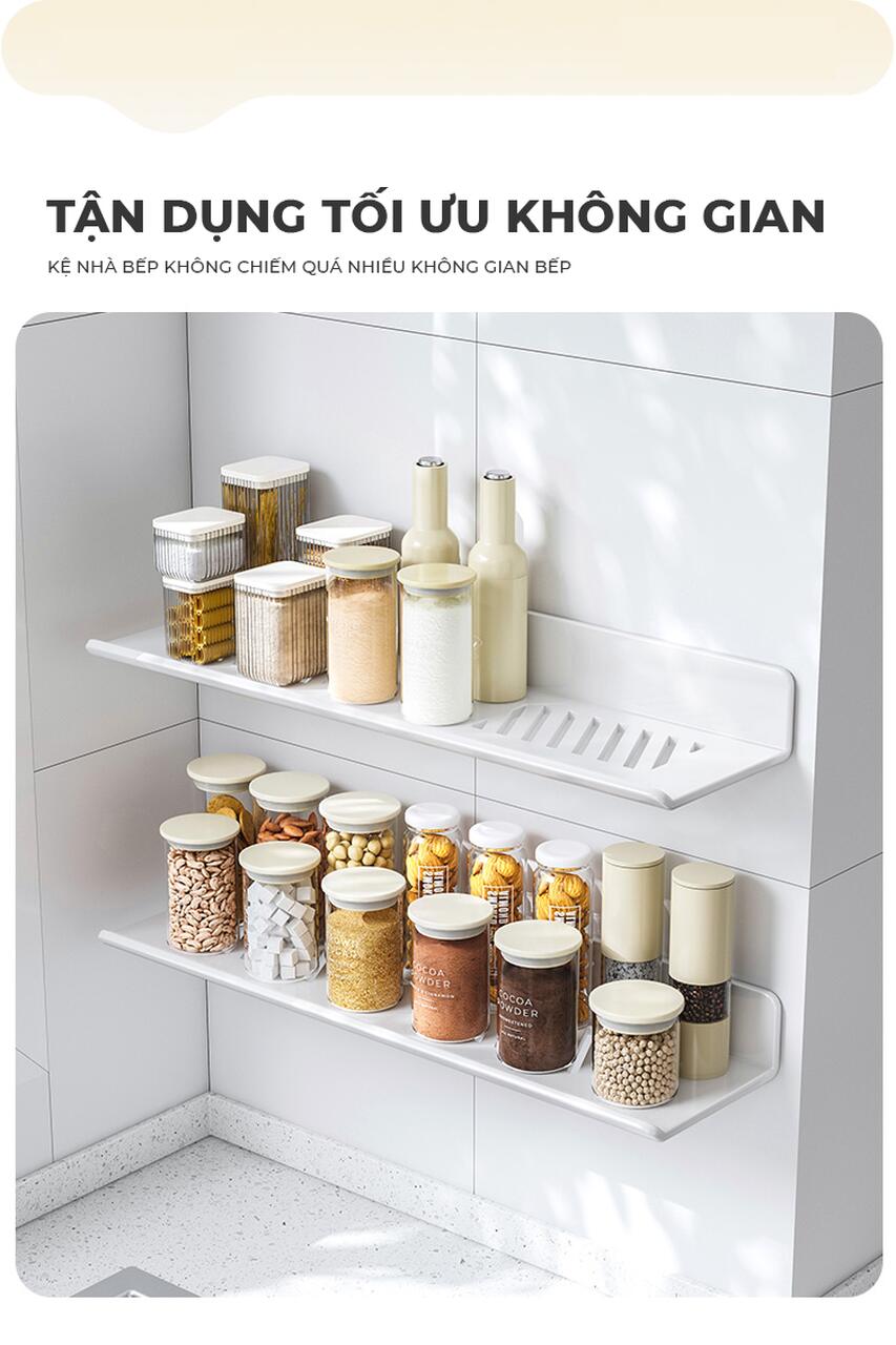 Tiết kiệm không gian: Với thiết kế nhỏ gọn và tiện lợi, kệ giá vị dán tường giúp bạn tối ưu hóa không gian lưu trữ mà không làm phòng bị bừa bộn. Đặc biệt hữu ích cho những căn hộ nhỏ hoặc không gian cần tiết kiệm diện tích.