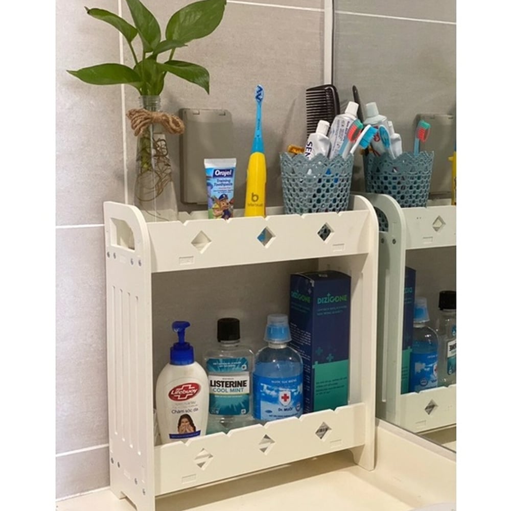 Điều hấp dẫn nhất của mẫu thiết kế kệ nhà tắm là sản phẩm được làm từ chất liệu Gỗ Nhựa Composite (PVC) chống thấm nước & chống ẩm mốc, chống mối mọt... giúp bạn yên tâm trong quá trình sử dụng .