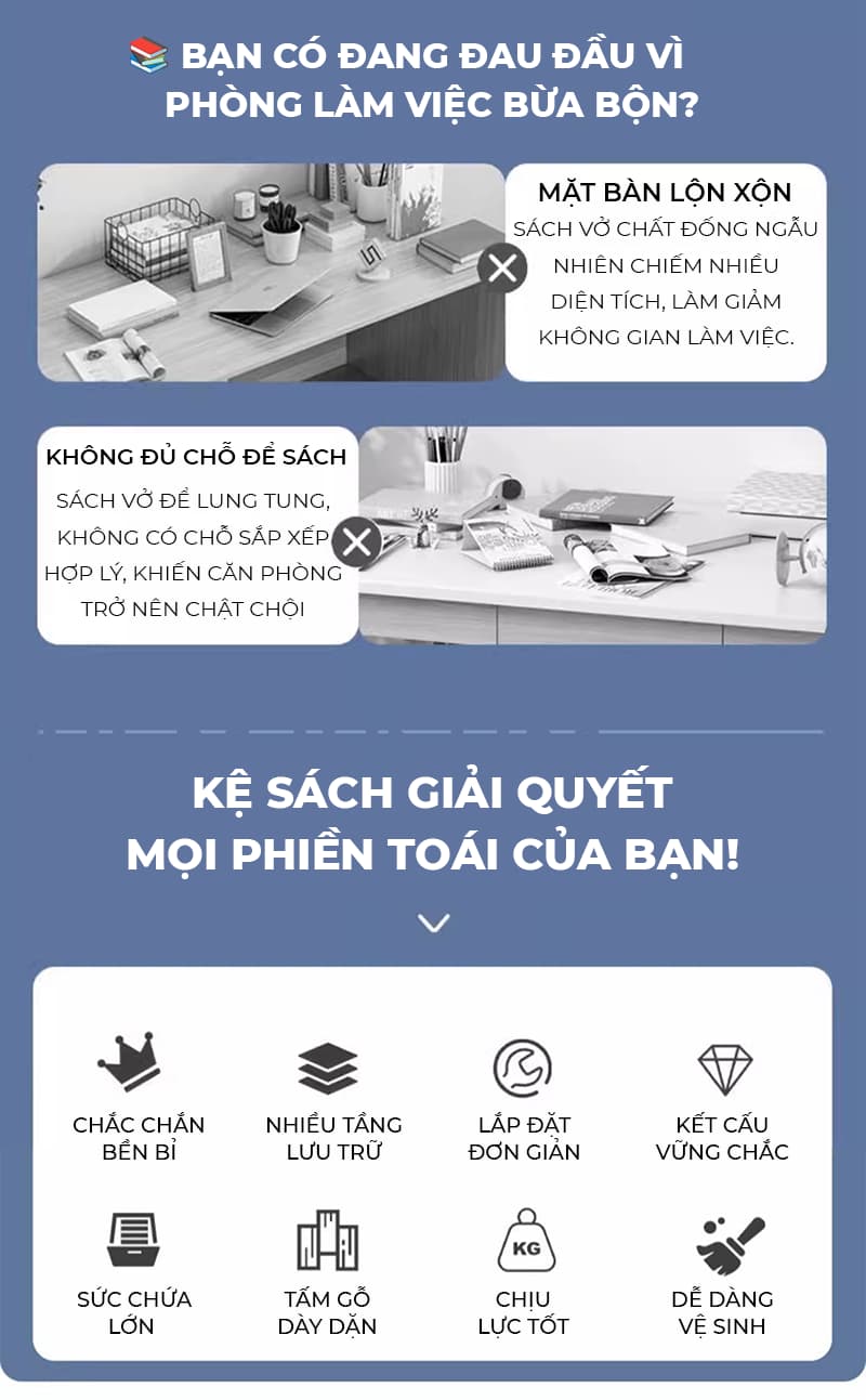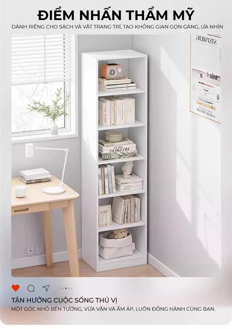 - Phù hợp với nhiều không gian khác nhau: phòng khách, phòng ngủ, phòng làm việc kệ sách đứng.