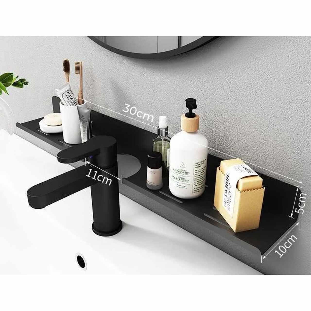 Sản phẩm có thiết kế rỗng tiện dụng giúp nước dễ dàng thoát ra, tránh tình trạng đọng nước và rỉ sét. Các lỗ rỗng không chỉ tăng cường độ bền mà còn giúp kệ trông nhẹ nhàng, hiện đại, phù hợp với xu hướng thiết kế nội thất hiện nay. Bên cạnh đó, cạnh ngoài của kệ được khoét một lỗ bán nguyệt để có thể vừa vặn đặt vào các vị trí có vòi nước như bồn rửa mặt, bồn rửa bát hay vòi tắm.