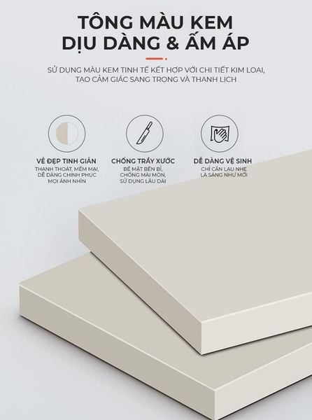 Chất liệu: Gỗ MDF phủ melamin chống xước chống nước dễ dàng vệ sinh.