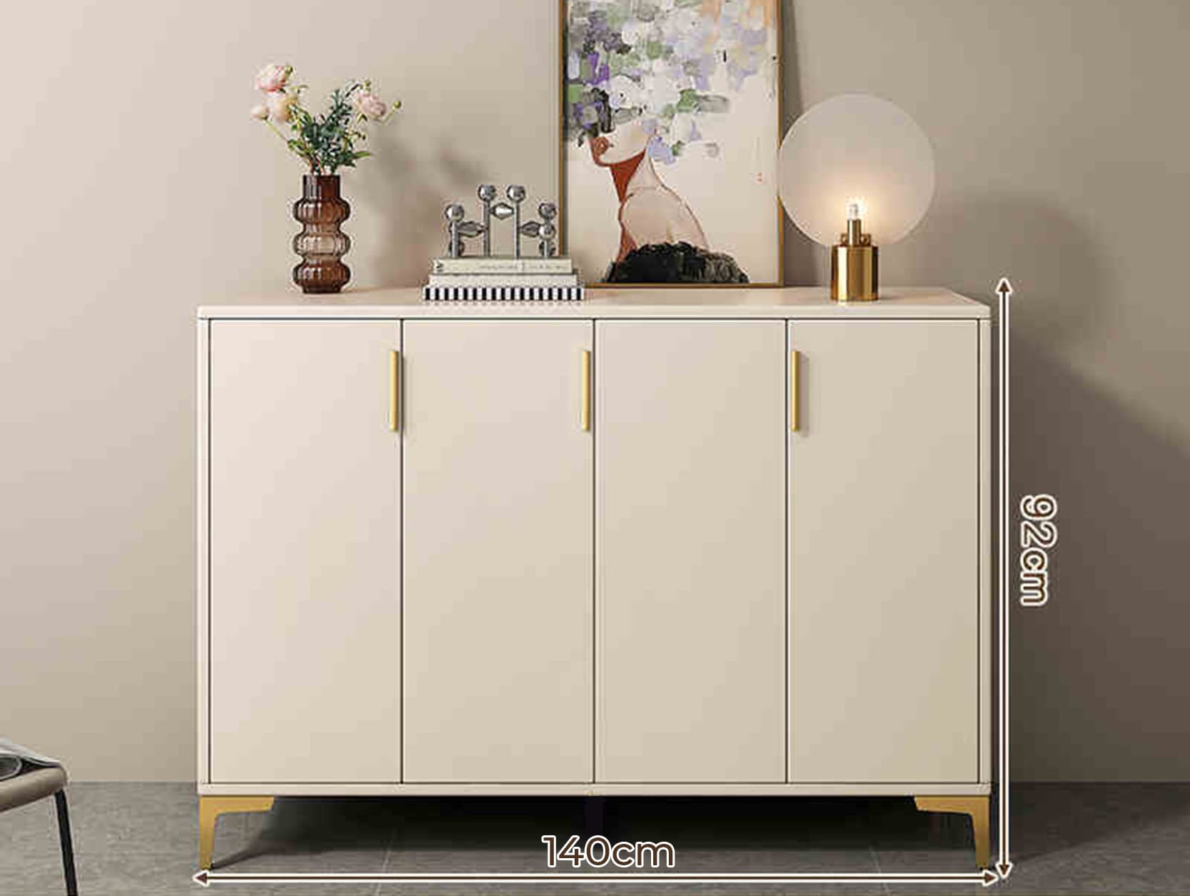 Tủ 4 cánh : Dài 120/140cm, Rộng 32cm, Cao 92cm.