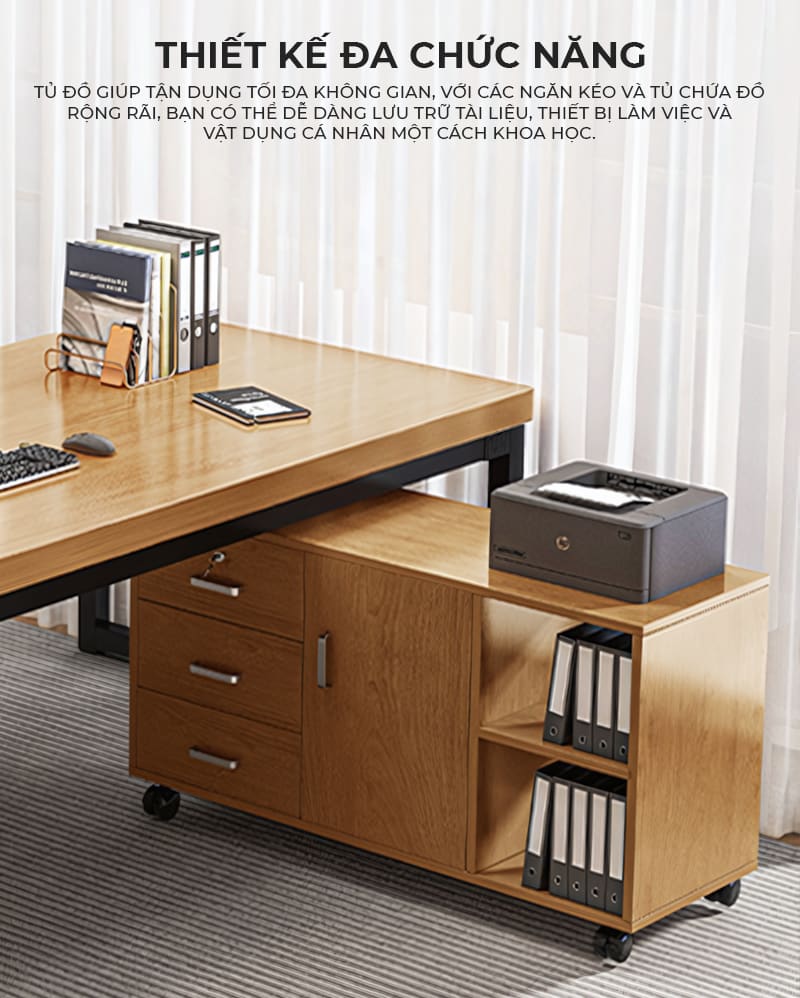 Tủ hồ sơ là một phần không thể thiếu trong bất kỳ không gian làm việc nào. Nếu bạn đang tìm kiếm một giải pháp lưu trữ vừa gọn gàng, vừa tiện lợi, lại dễ dàng di chuyển khi cần – thì mẫu tủ hồ sơ di động gỗ veneer này chính là sự lựa chọn lý tưởng.