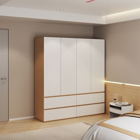 Tủ quần áo thông minh cánh mở kết hợp ngăn kéo đa năng - 200x180x55 cm - Màu Vân Gỗ phối trắng - Nội Thất IGA Việt Nam