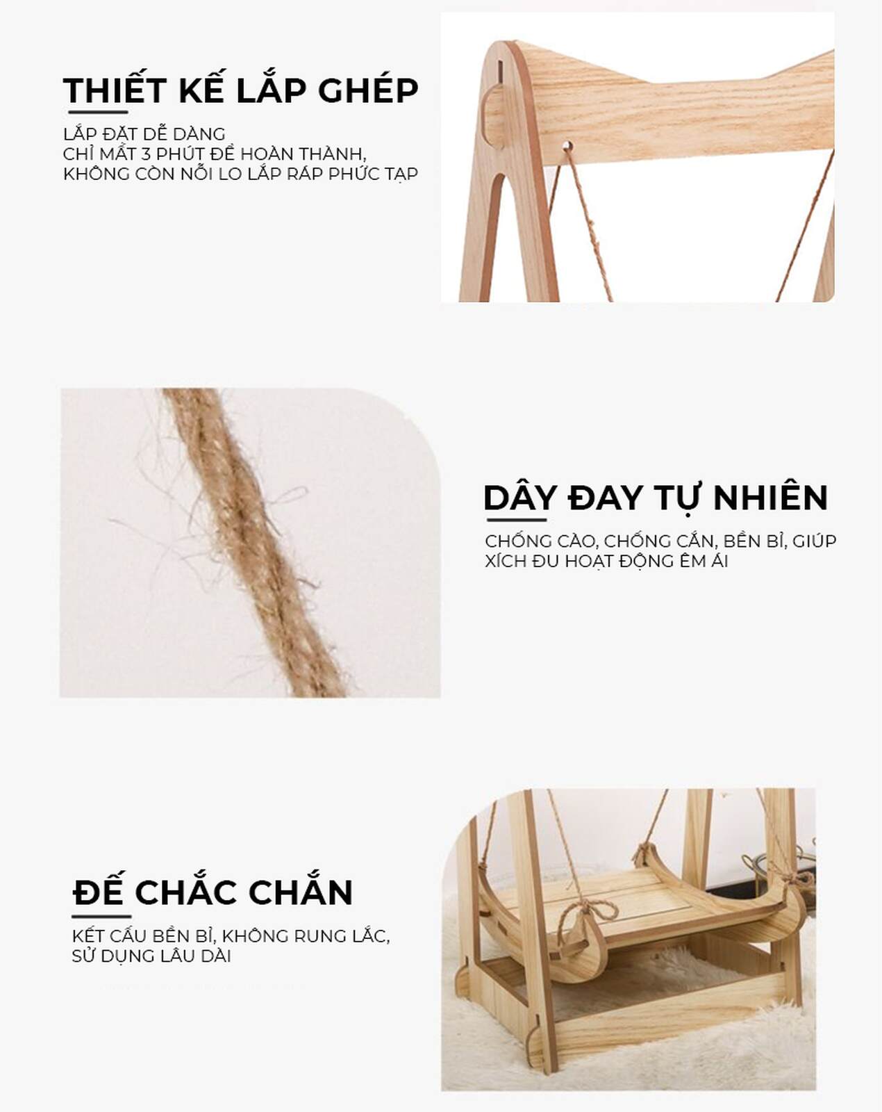 Võng còn tích hợp dây đay tự nhiên siêu bền, chống cào và chống cắn, là nơi lý tưởng để mèo mài móng và giải trí. Đây là món quà hoàn hảo, vừa là chỗ nằm êm ái, vừa giúp mèo vận động, sử dụng lâu dài.