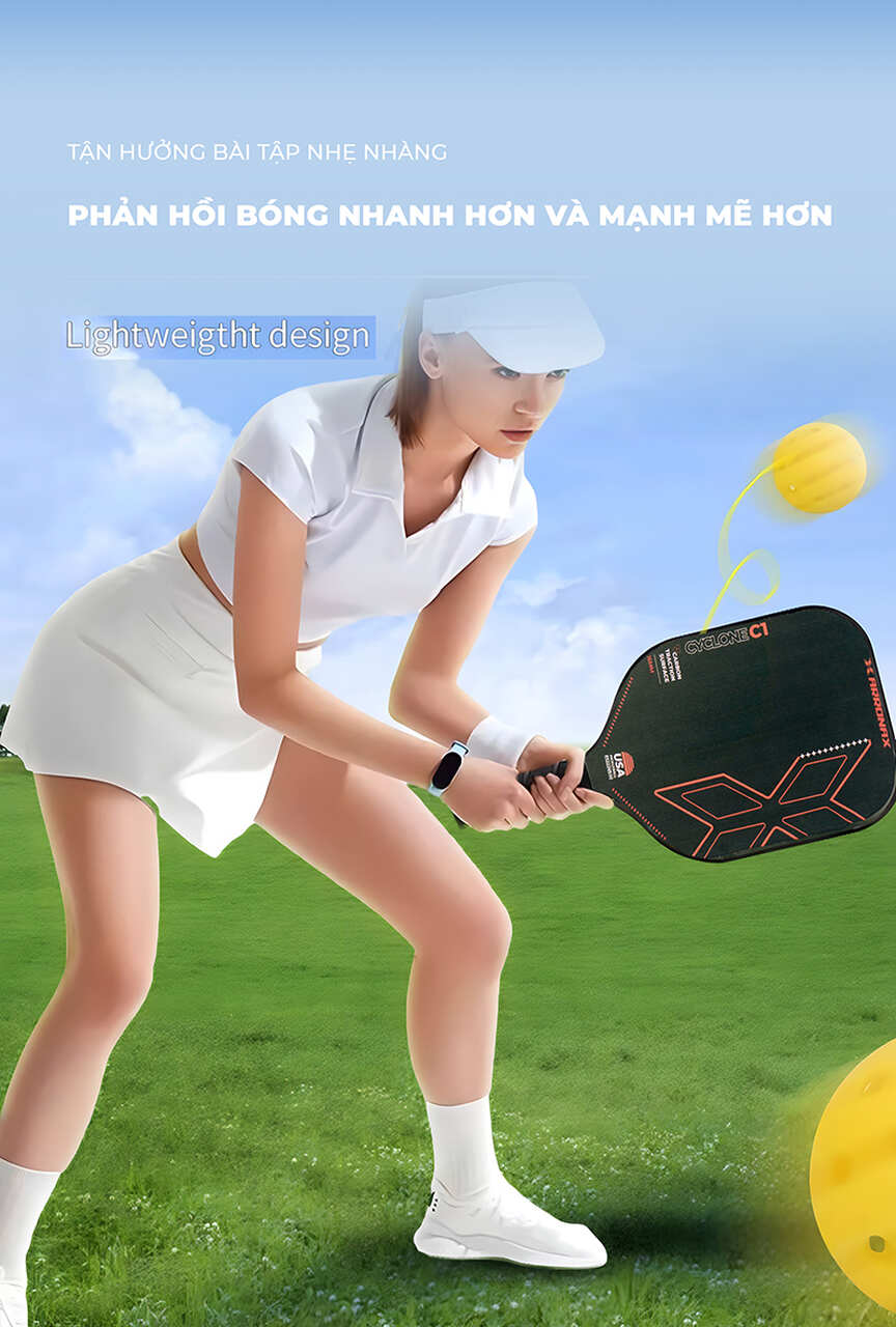 Vợt PK01 được thiết kế để tăng cường độ linh hoạt và độ phản hồi của bóng. Điều này giúp người chơi dễ dàng điều khiển đường bóng với độ chính xác cao. Nhờ vào cấu trúc vợt đặc biệt, bạn sẽ cảm nhận được sự ổn định khi tung những cú đập mạnh, đồng thời dễ dàng kiểm soát trong các pha đánh nhanh, dứt khoát.